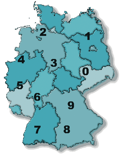 Um einen qualifizierten Fachhändler in ihrer Nähe zu finden, klicken Sie bitte in nebenstehender Karte auf die erste Zahl ihres Postleitzahlenbereichs. |